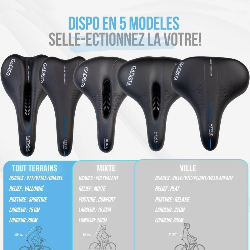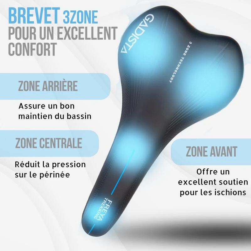 Technologie 3ZONES pour un confort optimal, Fabriquée à la main en Italie. Selle adaptée aux VTT, VTTAE, GRAVEL, vélo de course. Son aérodynamisme offre un excellent compromis confort & performance